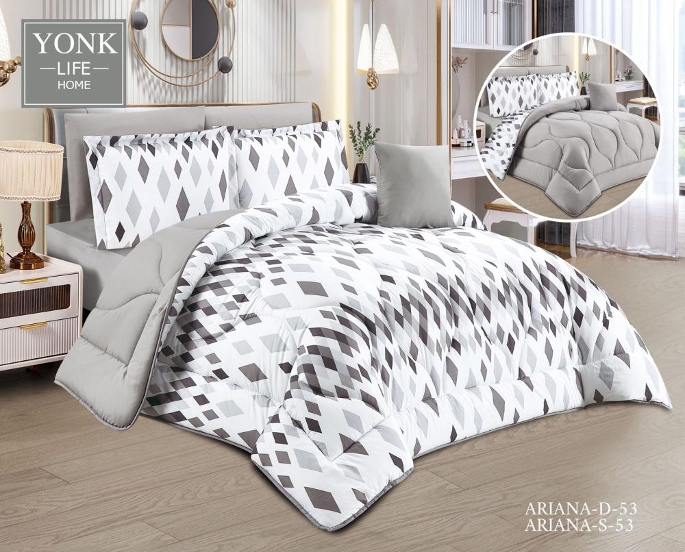 - يتضمن 6 قطع: 1 مفرش 230x250 سم - 2 وسادات 50x75+5 سم - 2 أكياس وسادة 50x75 سم - 1 ملاية سرير 200x200+30 سم
